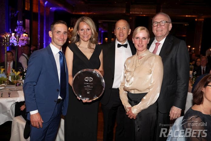 Feierliche Ehrung der Champions 2023 - Galopper des Jahres - Rene Piechulek, Nadine Siepmann, Lars-Wilhelm Baumgarten, Sarah Steinberg und Dr. Michael Vesper am 31.05.2024 bei der Championatsehrung in Baden-Baden. Copyright by Marc Ruehl - Veroeffentlichung nur gegen Honorar (zzgl.MwSt), Namensnennung und Beleg, Bank Routing Number: BIC GENODED1PAF, Bank Account Number: IBAN DE04 3706 2600 1201 6180 17, Steuer-Nr.: 203/5266/0306, Ust_Id_Nr.: De 122081417, Zur Gaulshuette 29, 50181 Bedburg, Phone: +49-(0)2272-83351, www.marcruehl.com, info@marcruehl.com, No Model Release, Abtretung von Persoenlichkeitsrechten der abgebildeten Person/Personen liegen nicht vor. Speichern in Bilddatenbanken oder Vervielfaeltigung ist ohne schriftliche Genehmigung nicht gestattet.