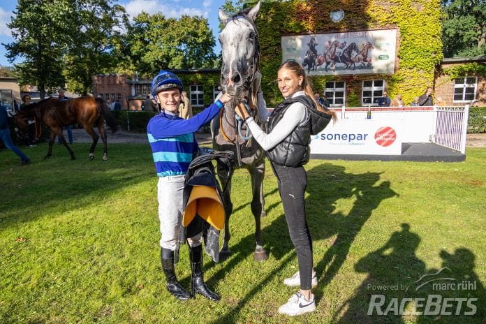 Parigi siegt unter Tomas Roman am 14.09.2024 Renntag in Berlin-Hoppegarten. Copyright by Marc Ruehl - Veroeffentlichung nur gegen Honorar (zzgl.MwSt), Namensnennung und Beleg, Bank Routing Number: BIC GENODED1PAF, Bank Account Number: IBAN DE04 3706 2600 1201 6180 17, Steuer-Nr.: 203/5266/0306, Ust_Id_Nr.: De 100281417, Zur Gaulshuette 29, 50181 Bedburg, Phone: +49-(0)2272-83351, www.marcruehl.com, info@marcruehl.com, Speichern in Bilddatenbanken oder Vervielfältigung ist ohne schriftliche Genehmigung nicht gestattet. Für redaktionelle Nutzung - gegen Honorarzahlung - freigegeben. Bei nicht journalistischer Verwendung bitten wir um Rücksprac