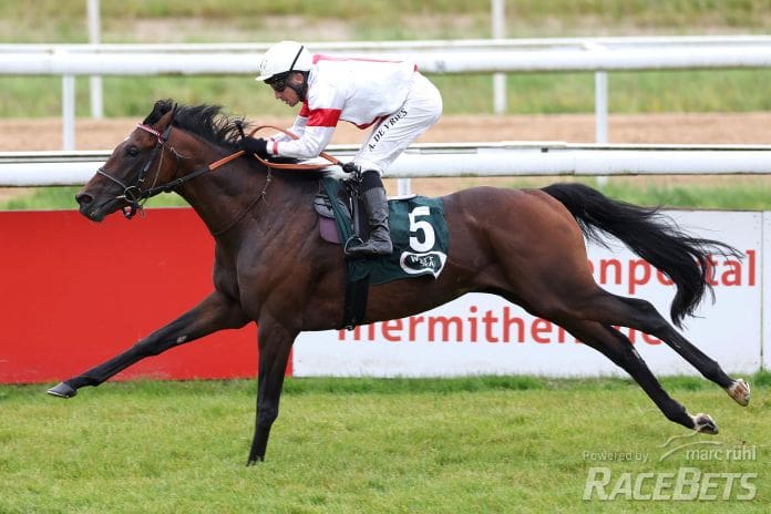 Borna am 08.10.2023 beim Renntag in Kln. Copyright by Marc Ruehl - Veroeffentlichung nur gegen Honorar (zzgl.MwSt), Namensnennung und Beleg, Bank Routing Number: BIC GENODED1PAF, Bank Account Number: IBAN DE04 3706 2600 1201 6180 17, Steuer-Nr.: 203/5266/0306, Ust_Id_Nr.: De 100281417, Zur Gaulshuette 29, 50181 Bedburg, Phone: +49-(0)2272-83351, www.marcruehl.com, info@marcruehl.com, Speichern in Bilddatenbanken oder Vervielfltigung ist ohne schriftliche Genehmigung nicht gestattet. Fr redaktionelle Nutzung - gegen Honorarzahlung - freigegeben. Bei nicht journalistischer Verwendung bitten wir um Rcksprache